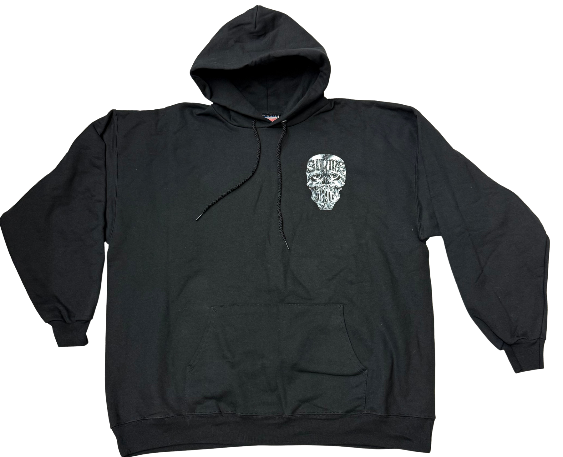SOLID BLACK HOODIE WITH SIMMS LOGO PRINT